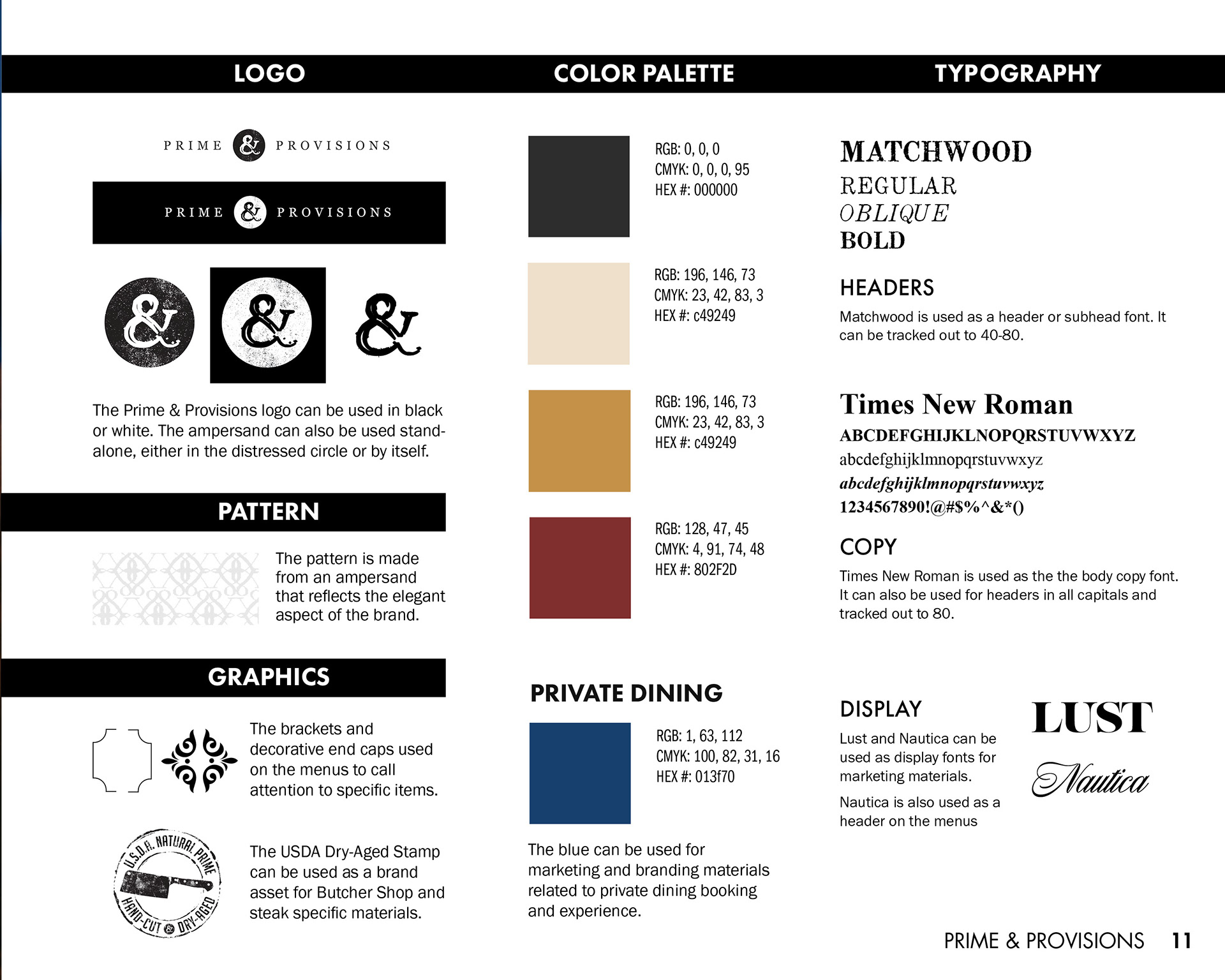 Prime & Provisions is a Dineamic Hospitality Steakhouse in Chicago. In 2022 we decided to update the menu design for the first time since it's opening. I also took this opportunity to define and expand upon the Prime & Provisions visual identity.